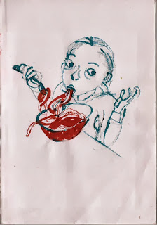 I love to sketch my family members, and my most popular model is my youngest daughter Noa. She got used to my "not always nice" style, I educated her with sentences like "drawing isn't a photograph" and "that's the way I see you". So now she's kind of likes my sketches of her. I have a big collection of her sketches, most of them I use to draw while she was eating. Sharing here some of them :)